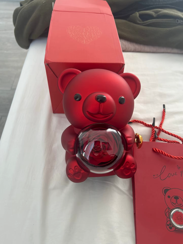 Miś z Wieczną Różą z Grawerowanym Naszyjnikiem