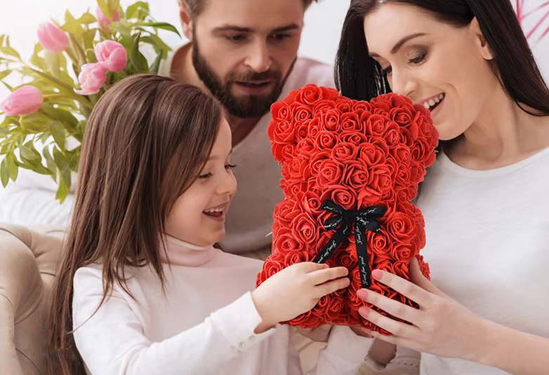 Miś z Róż z Pianki, 25 cm – Prezent Walentynkowy